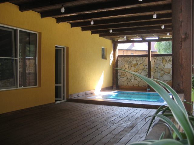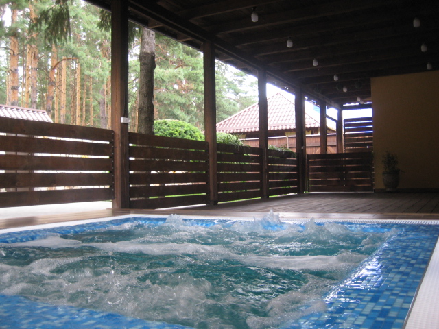 Загородный банный комплекс в сосновом лесу с парной из бревенчатого сруба, печью каменкой для крепкого русского пара и уличным спа-бассейном с теплой водой. Для максимального оздоровительного эффекта система аква-гидромассажа в спа, управляемая дистанционно, распределяет воздушный поток одновременно на шесть мест.